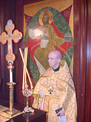 During the singing of the third antiphon, whether it be the Beatitudes or the Troparion of the day, the so-called Small Entrance is made. The Small Entrance is the solemn procession of the clergy to the altar led by the Book of the Gospels. If the bishop is celebrating, the Gospel Book is brought out to him in the center of the church in the midst of the people where he has been standing from the beginning of the liturgy.